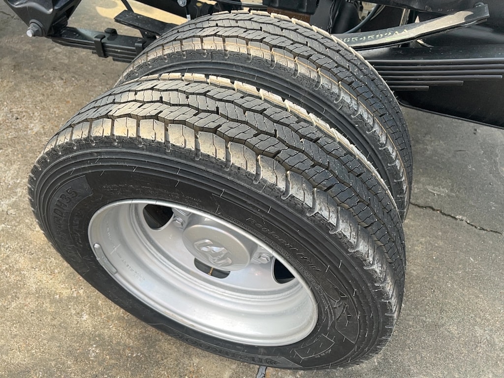 Wheels 19.5 x 6-inch front and dual rear silver steel wheels