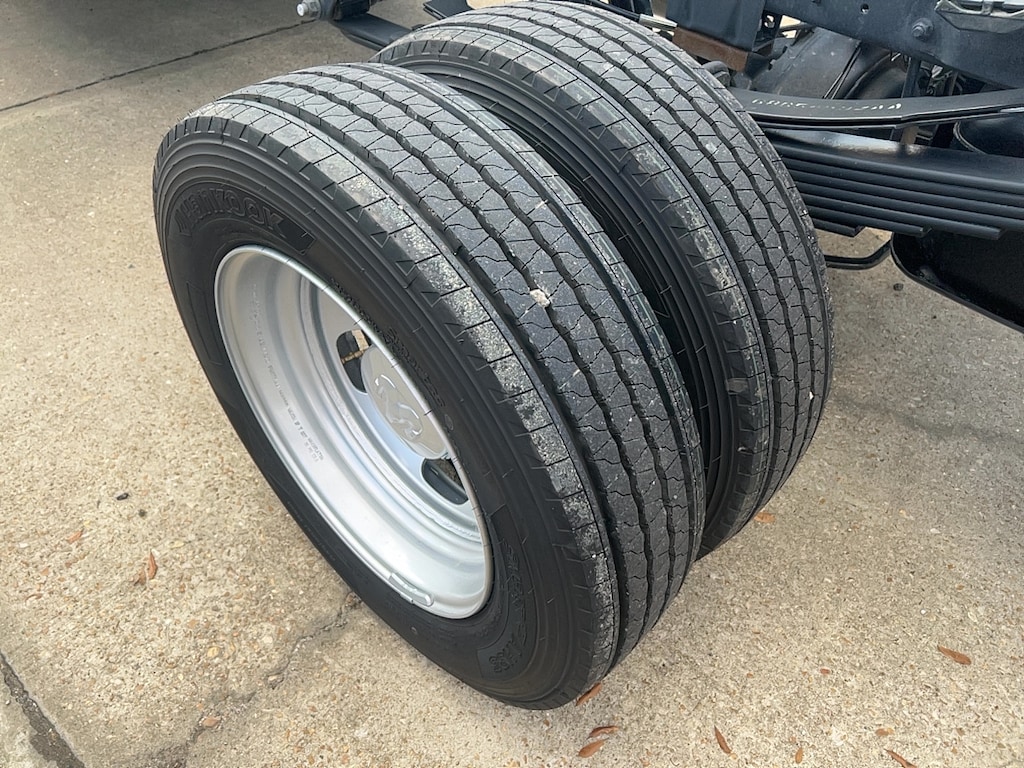 Wheels 19.5 x 6-inch front and dual rear silver steel wheels